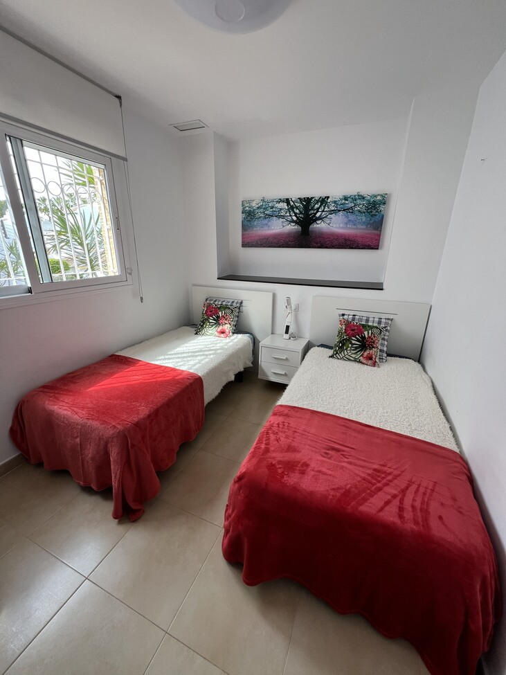 Lejlighed til salg i Orihuela Costa, OrihuelaWe offer this well-maintained apartment in a gated complex with a swimming pool, in a quiet neighborhood, close to all amenities and golf courses. This ground-floor apartment consists of three bedrooms, two bathrooms, and a living room with an open-plan kitchen. The living room opens onto a sunny terrace with a garden. A utility room is also located off the kitchen. The property is sold furnished, with appliances and ducted air conditioning. A surface parking space is included in the complex. The complex offers a large swimming pool, a jacuzzi, and green areas. It also has a children's playground and mini golf. The location is close to the La Fuente and Villamartin Plaza shopping centers, several supermarkets, bars and restaurants, and the region's most popular golf courses.