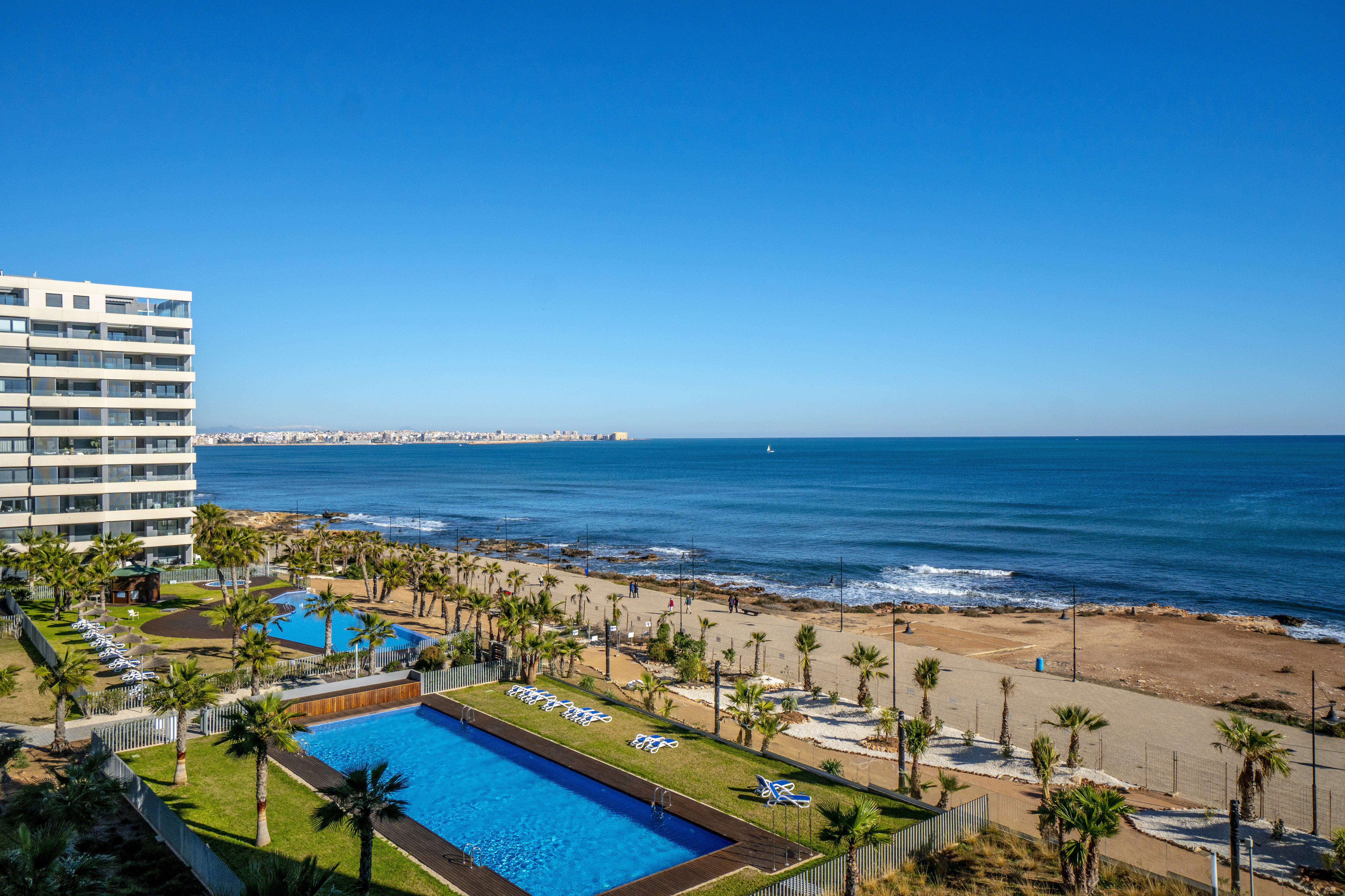 Apartment for sale in Torrevieja, TorreviejaThis elegant 2-bedroom, 2-bathroom apartment is located frontline, offering stunning open sea views. Its modern and bright design creates a cozy and relaxing atmosphere, ideal both for year-round living and for enjoying holiday stays.The apartment is sold fully furnished, equipped with high-quality furniture in harmonious tones and wooden details that add warmth and style. The layout is functional and comfortable, with spacious and well-utilized areas.In the area, you will find pools, including a heated pool, and a paddle tennis court, perfect for enjoying leisure time and sports activities without leaving the complex.This property also includes underground parking and a private storage room, providing additional practicality to your living experience.Located in Punta Prima, one of the most sought-after areas of the Costa Blanca, the apartment offers a peaceful and safe environment, close to the beach, with easy access to supermarkets, restaurants, bars, and local services. The area is ideal for sea and nature lovers and is a short drive from shopping centers, golf courses, and other Costa Blanca attractions.