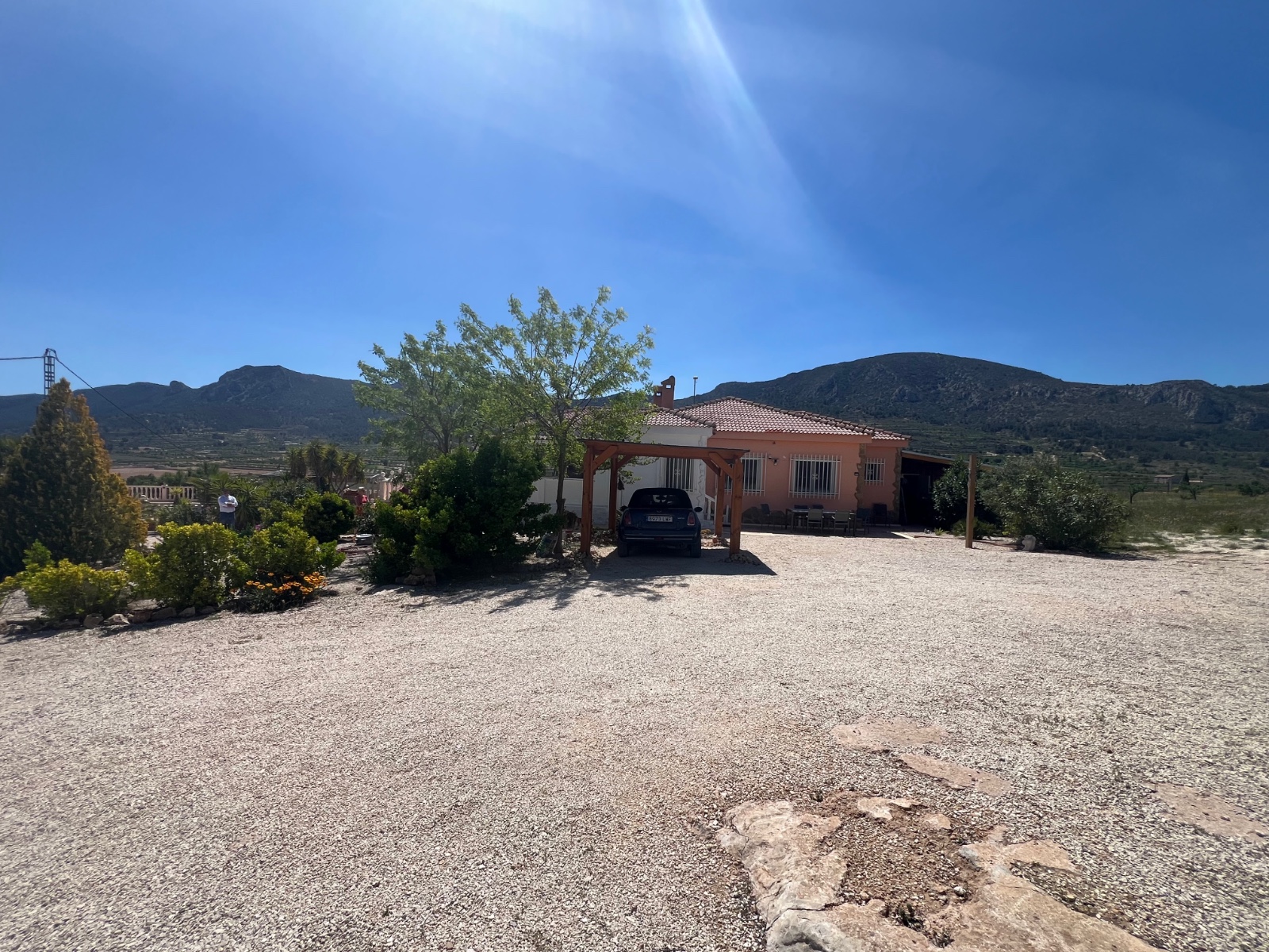 Villa for sale in La Romana, La RomanaThis superb villa in perfect condition is located halfway between the 2 villages of La Romana and Alguena with all amenities (health center, pharmacy, supermarkets, restaurants, weekly market, DIY stores etc) A beautiful terrace overlooking the pool (10x5) and offers extraordinary views of the surrounding mountains. The main villa renovated with taste and quality materials consists of a spacious veranda (30m2), a living room, a dining room, a kitchen, a pantry, 3 bedrooms and 2 bathrooms including one en suite. It benefits from air conditioning, gas central heating and an internet connection. On the side of the property there is also a chalet with an additional bedroom (9,5m2) with a toilet and a shed (10m2). There is also another construction of 28m2 including a carport and a laundry/shed. This property is connected to the power grid but also has 10 photovoltaic panels and a 5kw inverter. A 25,000-liter water depot with a brand new pump ensures the supply of the house. Alicante airport and the coast are about 45 minutes away.