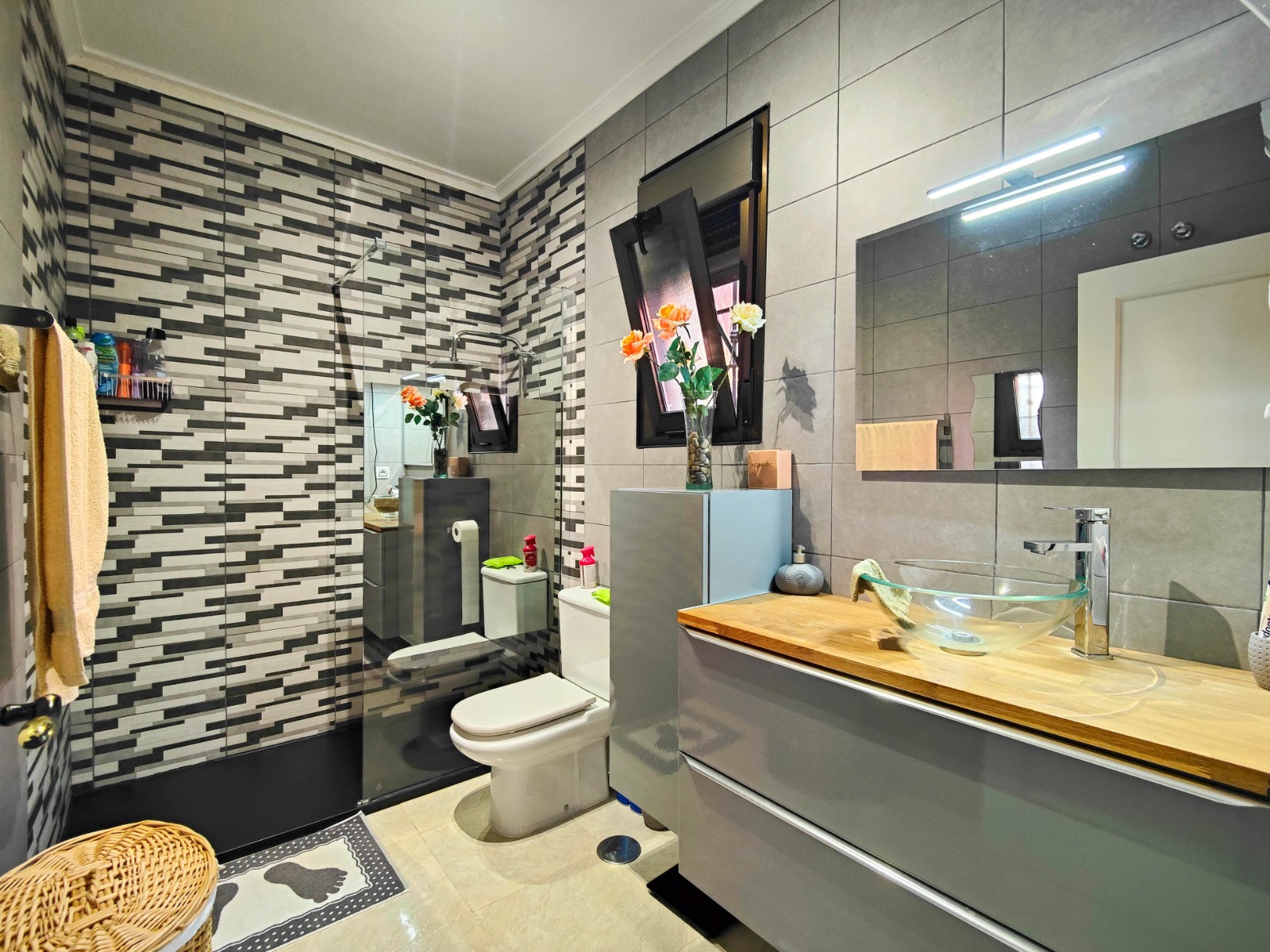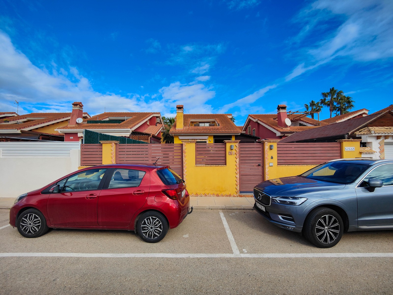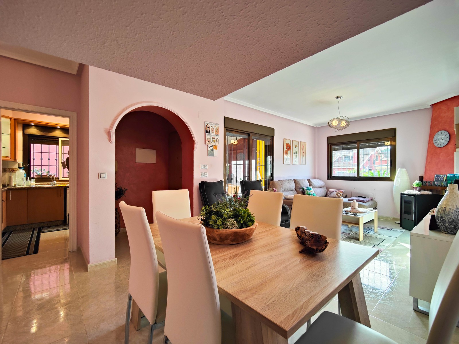 South facing detached villa with private heated swimming pool for sale in the sought-after residential complex Villas María III, located in El Raso – Guardamar del Segura.The property sits on a 300 m² plot with a 117 m² built surface, distributed over two floors. It offers 3 bedrooms and 3 full bathrooms, one of which has been completely renovated. The master bedroom, located on the ground floor, features an en-suite bathroom, providing maximum comfort.The ground floor comprises an entrance hall, spacious living/dining area, kitchen, one full bathroom and a bedroom with en-suite bathroom.Upstairs, there are two additional bedrooms, one full bathroom and a south-facing terrace, accessible from the hallway.Outside, the villa boasts a private swimming pool, outdoor shower, porch, and a storage room at the rear of the property. Thanks to its south orientation, the house enjoys sunlight throughout the day. The residential complex also offers a communal swimming pool.There is parking within the plot, as well as a private, numbered parking space directly in front of the property.The villa is sold fully furnished and equipped with appliances, and includes air conditioning in all rooms.Located in an area with bars, restaurants and supermarkets, and just 10 minutes by car from the beaches of Guardamar del Segura, this property is perfect as a permanent home or a holiday investment.