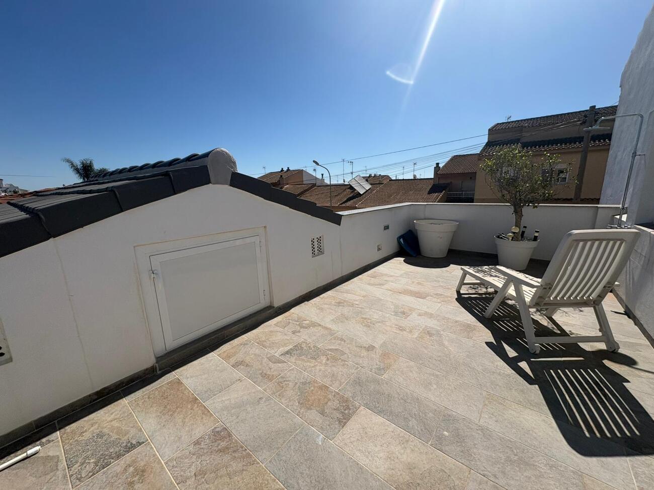 Bungalow for sale in San Pedro del Pinatar, San Pedro del PinatarSun, space and beautiful views combine in this well-presented three bedroom, two bathroom bungalow located in San Pedro.The property offers a spacious and bright living and dining area, complemented by a modern kitchen diner designed for both everyday living and entertaining. Two of the bedrooms are generous doubles with ensuite bathrooms, providing comfort and privacy.To the front, a lovely private terrace creates an ideal space to relax, while off-road parking adds everyday convenience. The home is equipped with ducted air conditioning and modern ceiling fans throughout, ensuring year-round comfort. An osmosis water filtration system is also installed, providing high-quality drinking water.At the rear, a private courtyard includes a useful storage room and a spiral staircase leading to a large rooftop solarium. From here, you can enjoy open views, making it a perfect space for sunbathing, dining or unwinding.The indicated final price does not include taxes (ITP/VAT/ IVA) nor notary and registry expenses, which will be calculated according to the current tariffs and rates.