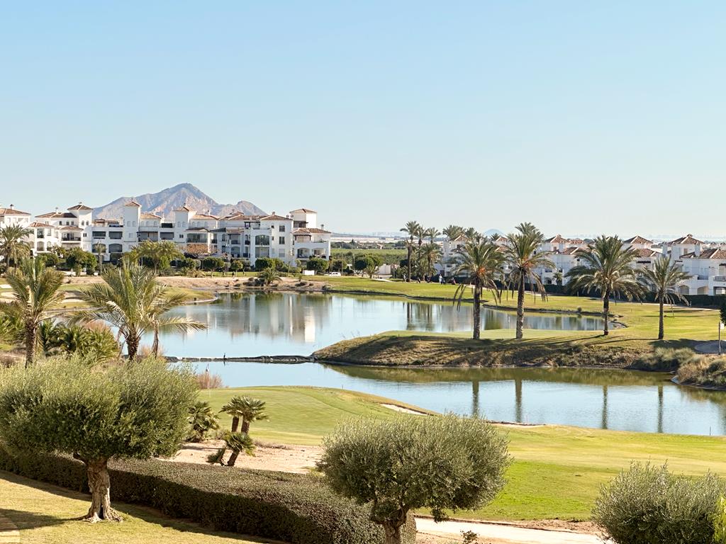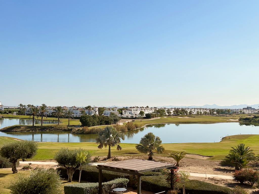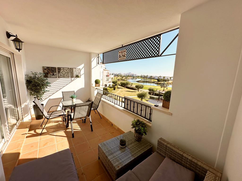 Departamento en venta en La Torre Golf - Roldan, MurciaWOW WOW WOW what a view this sunny SOUTH facing two bedroom one bathroom apartment has, arguably one of the best views on La Torre Golf Resort. La Torre Golf Resort is just a 15 minute drive to the beach, Murcia airport and Murcia city. There are an array of bars and restaurants, onsite supermarket, Tennis, Padel, multisports area, kids play parks and in the summer there is a great night market and bands playing in the square.On entering this beautiful apartment you are struck by how bright and airy it is as there is not only large patio doors leading to the terrace but also an extra window. The terrace is south facing so bathed in sunshine and has the most amazing views over the golf and lake which glistens in the sunlight. The lounge is a good size and has a new upgraded AC unit. The kitchen has a tilt and turn window and can easily be made open plan if you wished. There are two double bedrooms with fitted wardrobes and remote controlled ceiling fans and both bedrooms has juliet balconies with views to the countryside and mountains. The family bathroom is a good size and has a bathtub. This property comes furnished and has gas central heating, underground parking and lift access to all floors.Contact us to arrange to view, we would love to hear from you.