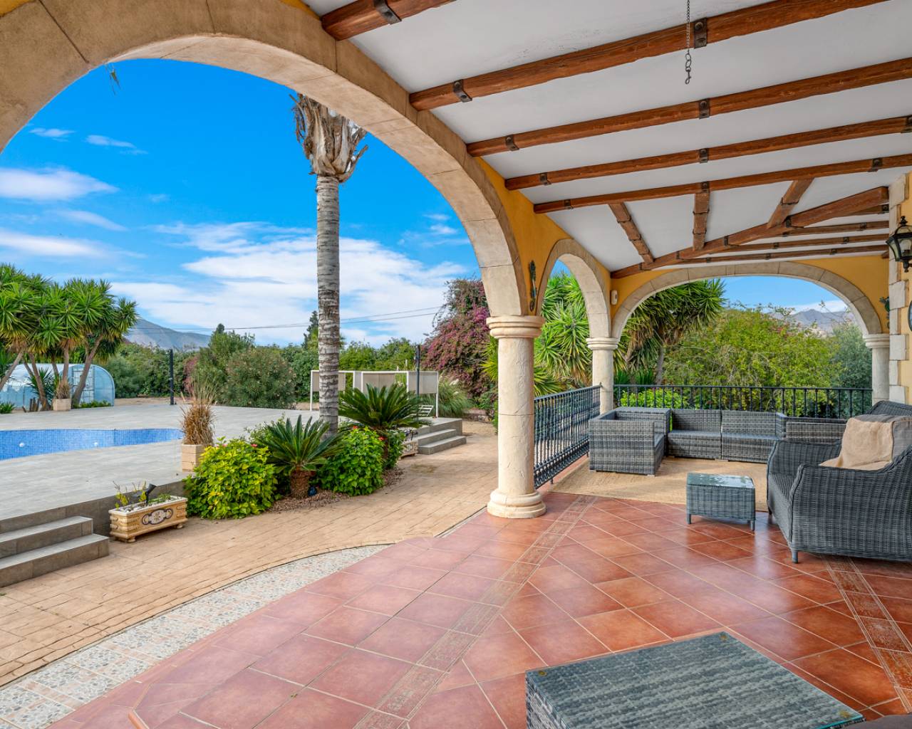 This exceptional four-bedroom villa is presented in excellent condition and offers spacious, well-designed accommodation in a truly private setting. A unique, one-off property, the villa is beautifully hidden away and set within meticulously landscaped gardens. With a desirable south-west-facing orientation, the home enjoys abundant natural light throughout the day, along with stunning views of the mountains, gardens, and swimming pool. The villa offers a generous build size of 274m² and features an impressive open-plan living and dining area centred around a charming fireplace, creating a warm and inviting atmosphere. There is a fully fitted kitchen, ideal for entertaining or accommodating extended family living, along with a utility room and ample storage throughout. Accommodation comprises a stunning master suite with walk-in wardrobe and en-suite bathroom, opening onto a private patio overlooking the pool and mountains. There are three further beautifully appointed bedrooms with fitted wardrobes, along with three bathrooms in total, including en-suite facilities, plus an additional guest toilet. Year-round comfort is assured with air conditioning, oil central heating, double glazing, and ceiling fans throughout. Externally, the villa truly excels. The large private swimming pool is complemented by a fully equipped outdoor kitchen and BBQ area, as well as a shower and toilet. A separate games room offers excellent flexibility and could easily be converted into a self-contained apartment. The mature, landscaped gardens provide a tranquil setting for relaxation and entertaining. The property is accessed via electric gates, ensuring privacy and security, and benefits from a double garage and ample parking. Additional features include white goods, negotiable furniture, and beautiful garden and pool views from multiple areas of the home. Ideally located, the villa is just 10 minutes from local amenities, 30 minutes from beaches and golf courses, and 40 minutes from the airport. This is a superb opportunity to acquire a high-quality, private villa offering exceptional space, comfort, and lifestyle in a peaceful yet highly accessible location.