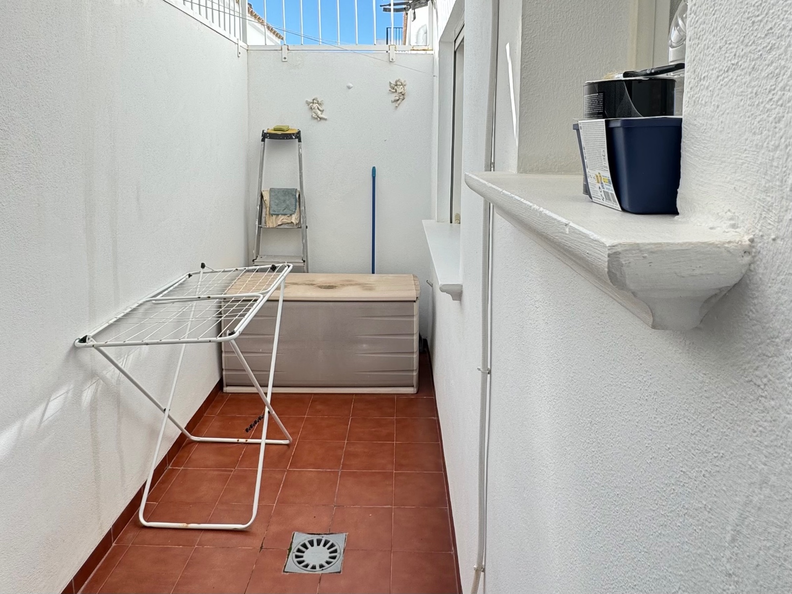 De volledig uitgeruste keuken wordt aangevuld door een overdekt terras aan de achterzijde, waar handig de wasmachine en boiler geplaatst kunnen worden. De woning is tevens voorzien van airconditioning (warm en koud), wat het hele jaar door optimaal comfort garandeert.