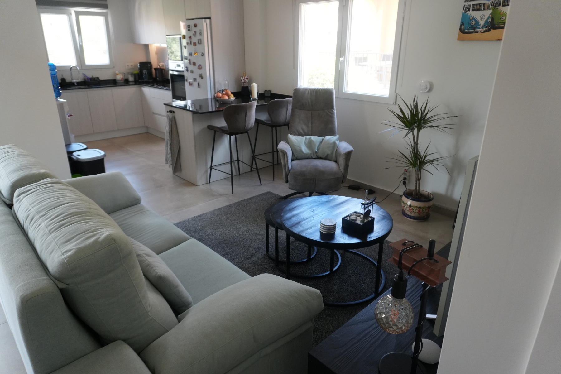 The bright and comfortable living room connects to a wonderful terrace that can be fully enclosed with sliding glass windows, allowing you to enjoy the space throughout the entire year. The kitchen is spacious and functional, and the property includes two cozy bedrooms and a modern bathroom.